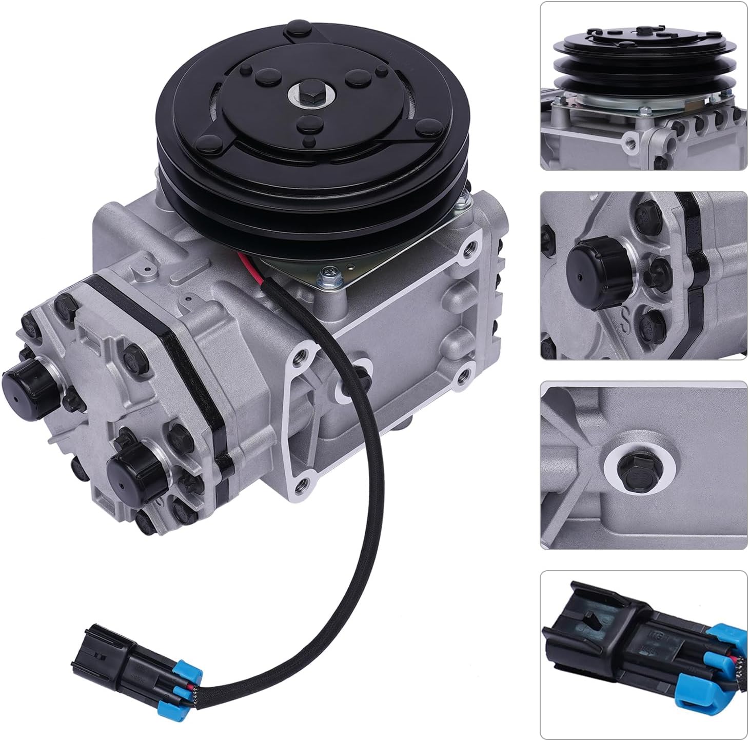 SpecificationsOE Part Number: 2509450C91Interchange Part Number: 5266 N83-304141T, N83304141T, ET210L25237C, ABPN83304141T, 4379RD5112180, 2509450C91, K3181376, K3553691, 75R7322, RD5112180P, 3096305Refrigerant: R134aPulley Groove Quantity:2Applicable Models: Freightliner, 1998 1997, C112 Century Class, w/2 grv clutch 2 wire w/Det.55 series,12L; , 2000 1996, All w/2 gr. 6" dia. 2 wire; w/Cat 3406B (C15) eng.; Peterbilt, 2000 1996, All w/2 gr. 6" dia. 2 wire; w/Cat 3406B (C15) eng.Condition: NewMaterial: Iron, Aluminum, CopperColor: Silver, BlackInstallation Position: Engine CompartmentWay of Use: Direct Replacement Control Method: Automatic AdjustmentAssembly Method: ClosedVoltage: 12VRated Power: 45WCurrent: 3.5ACompressor Drive Type:Belt DrivenType: CompressorOil Oz: 237ml/10ozOil Type: Pag 100Gross Weight: 6.5kg/14.3lbsProduct Weight: 5.8kg/12.8lbsPacking Size: 27*24*19cm/10.6*9.5*7.5inchProduct Size: 24*21*16cm/9.5*8.3*6.3inch HighlightsBrand New, With High QualityComfortable DrivingAluminum, Sturdy and DurableFast CoolingLow NoiseHigh SecurityOriginal Specification, Direct-fit ReplacementFine WorkmanshipLong Service LifeFits (As a Reference)For Freightliner, 1998 1997, C112 Century Class, w/2 grv clutch 2 wire w/Det.55 series,12L;, 2000 1996, All w/2 gr. 6" dia. 2 wire; w/Cat 3406B (C15) eng.;Peterbilt, 2000 1996, All w/2 gr. 6" dia. 2 wire; w/Cat 3406B (C15) eng.OE Part Number: 2509450C91Package Included1 x AC Compressor