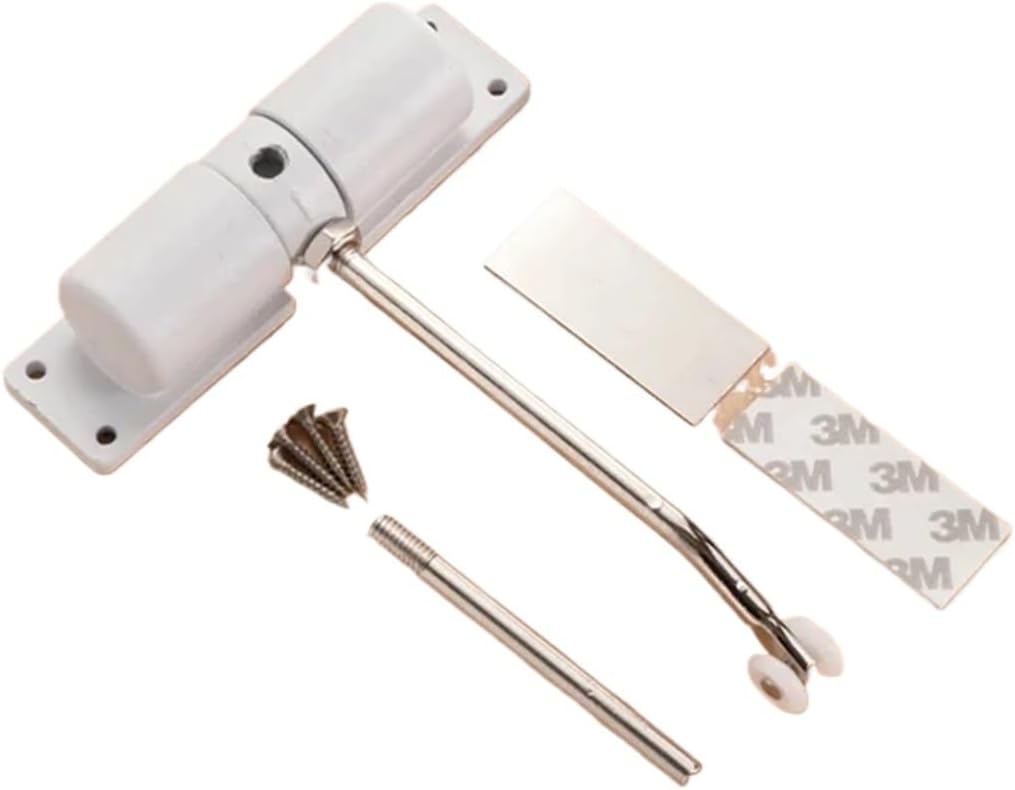 1×Automatic Door CloserParts List:Product Name: Automatic Door CloserMaterial: MetalSize: 128×32mmColor: WhiteStyle: PulleyDetailed description:[Durable Metal Material] This automatic door closer is made metal material, which is durable and not easy to fade. It has fine workmanship.[Adjustable Tension] This product not only adjusts the tension, but also the closing speed, converting a hinged door into a self-closing door. Its direction is not fixed, can be used for both left-handed and right-handed doors.[Easy Installation] This automatic door closer comes with accessories for easy installation. It can be used on doors weighing up to 30 kg and you can adjust the tension.[Protect Safety] Our automatic door closer is easy to use and can protect your safety. It provides easy and safe life, protect your door and lock.
