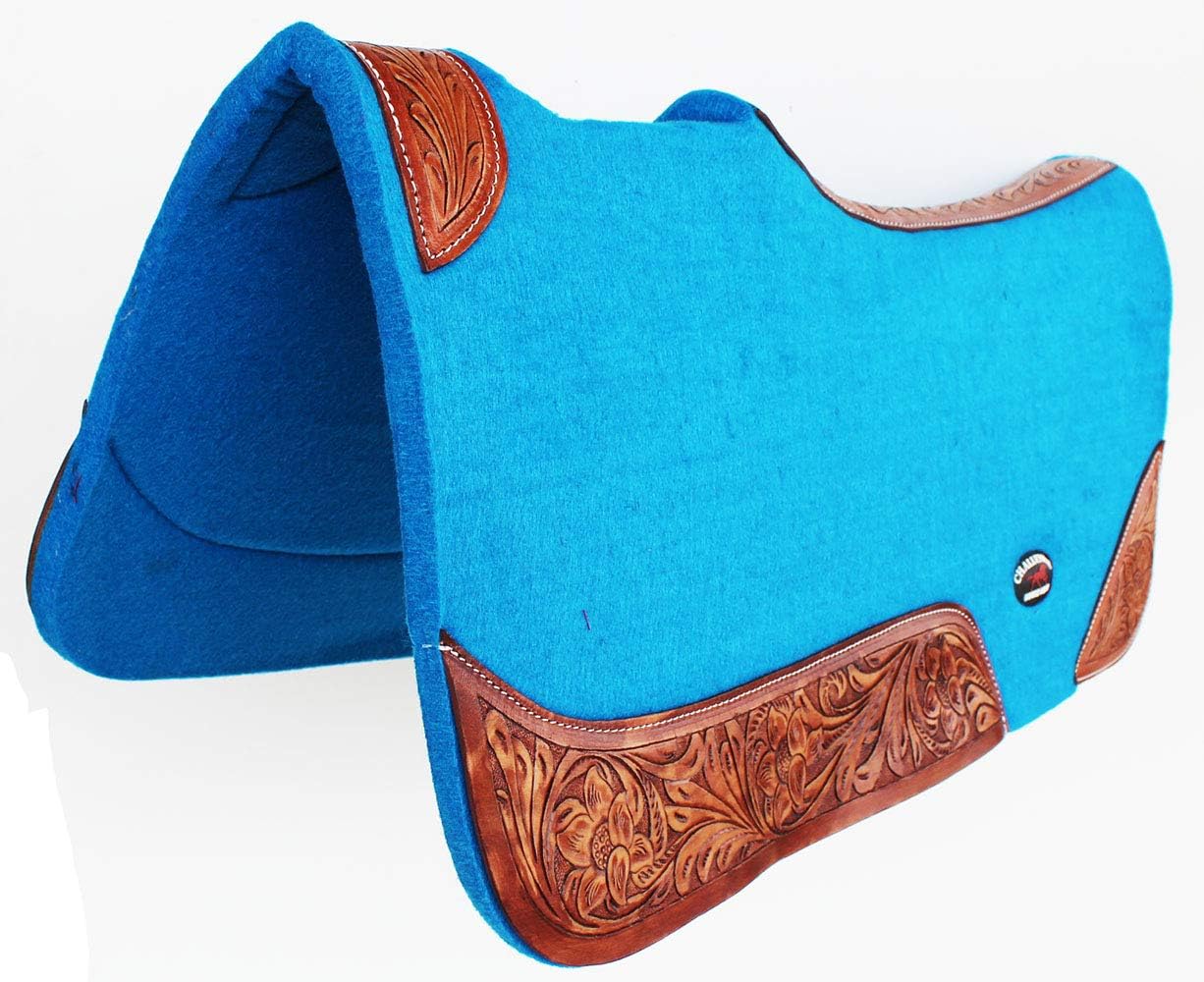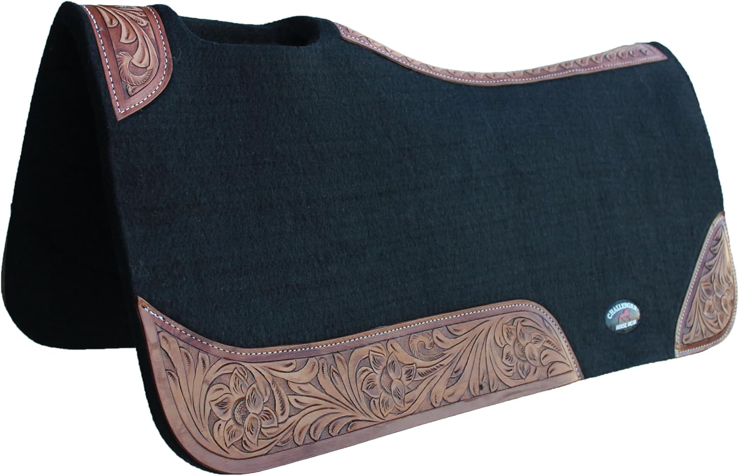 Challenger saddle pad, made of 100% heavy wool felt that stays soft and conforms to the horse's back with little break-in. Contoured for wither relief.