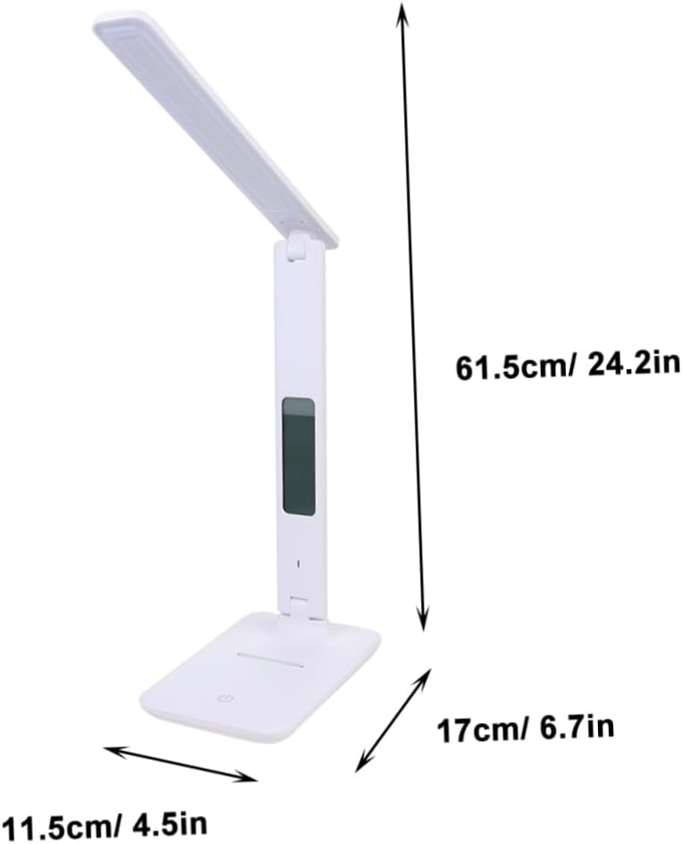 Package Include 1 x lamp Characteristics - Color: White rechargeable reading light. - Power: 5W reading lamp. - Size: Approx. 61.5 x 17 x 11.5cm/ 24.21 x 6.69 x 4.53inch bedside reading lamps. - Material: ABS and metal LED desk light. - Luminous Flux: >280lm table lamp. - It can also set an alarm clock, manage your calendar, read the time and temperature eye- lamp. - It gives off comfortable room lighting to enlighten your bedroom, living room, den, nursery, meditation room, or office touch control desk lamp. adjustable desk lamp - LED with and uniform light, better protect your eyes eye-protection lamp. - Charge the desk light for a couple of hours and place it anywhere you need it without wires dimmable desk lamp. - Lamp has no flickering and can be dimmed to suit your office or bedroom lighting environment table lights for desk.Goods Informationeye- lamp Do you want a desk lamp which is dimmable and eye-protection? This touch control table lamp will meet your anticipation.eye-caring study light With delicate and simple appearance, the LED light is very easy to use for a .rechargeable nightlight Nice lighting lamp for studying and working