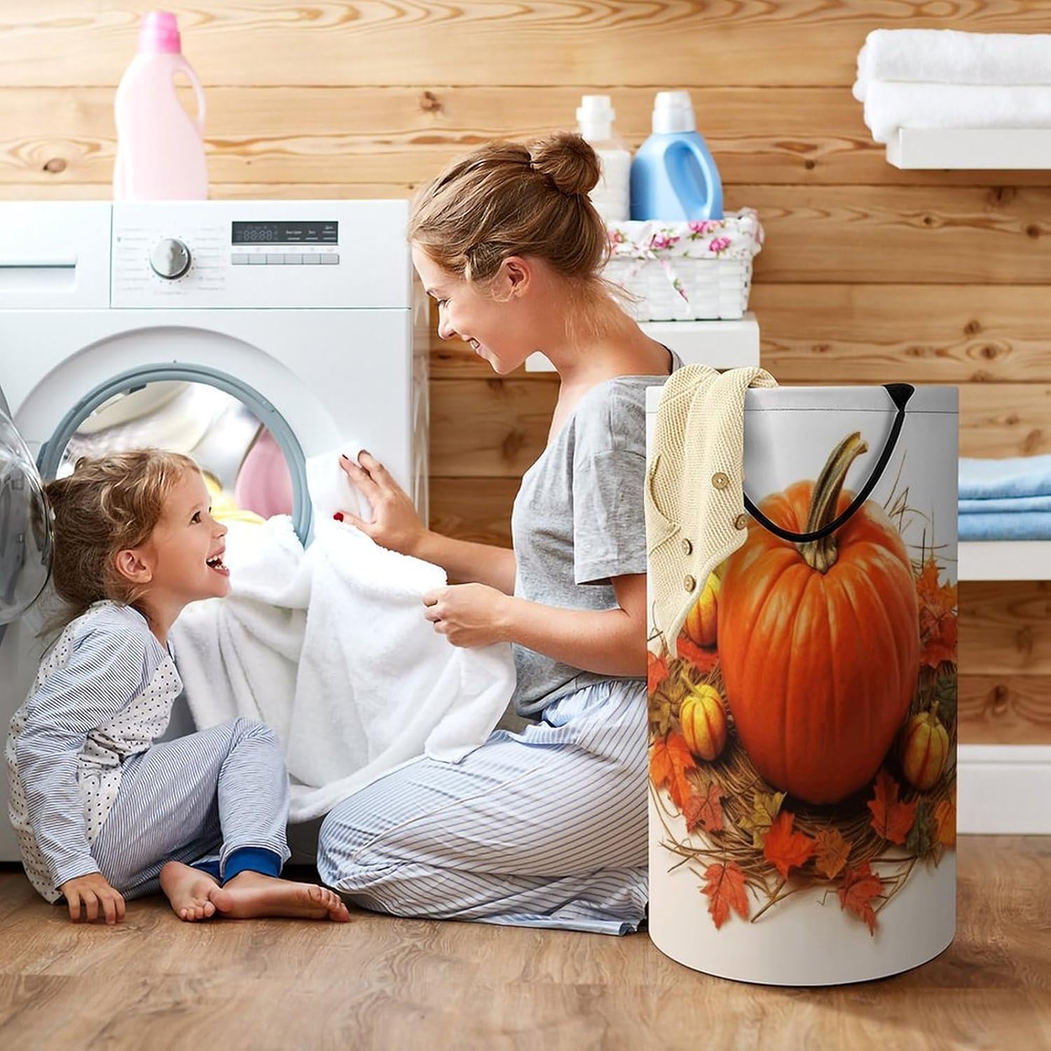 Upgrade your home organization with our Fall Pumpkinextra-large foldable laundry hamper!Made from high-density polyester,it’s built tough to resist water,humidity,and daily wear while staying odor-free,Measuring 27.2 x 15.7 inches,the spacious interior fits bulky loads think blankets,children’s toys,or a week’s worth of clothes saving you hassle.Dual reinforced handles ensure easy,stable carrying from room to room. When not in use,simply collapse it flat to stash under furniture or in tight spaces,making it perfect for apartments,travel,or dorm life.Beyond laundry,use it to tidy snacks,craft supplies,or pet items.Hand wash gently for upkeep;avoid bleach.Simplify storage with this versatile,space-saving essential!