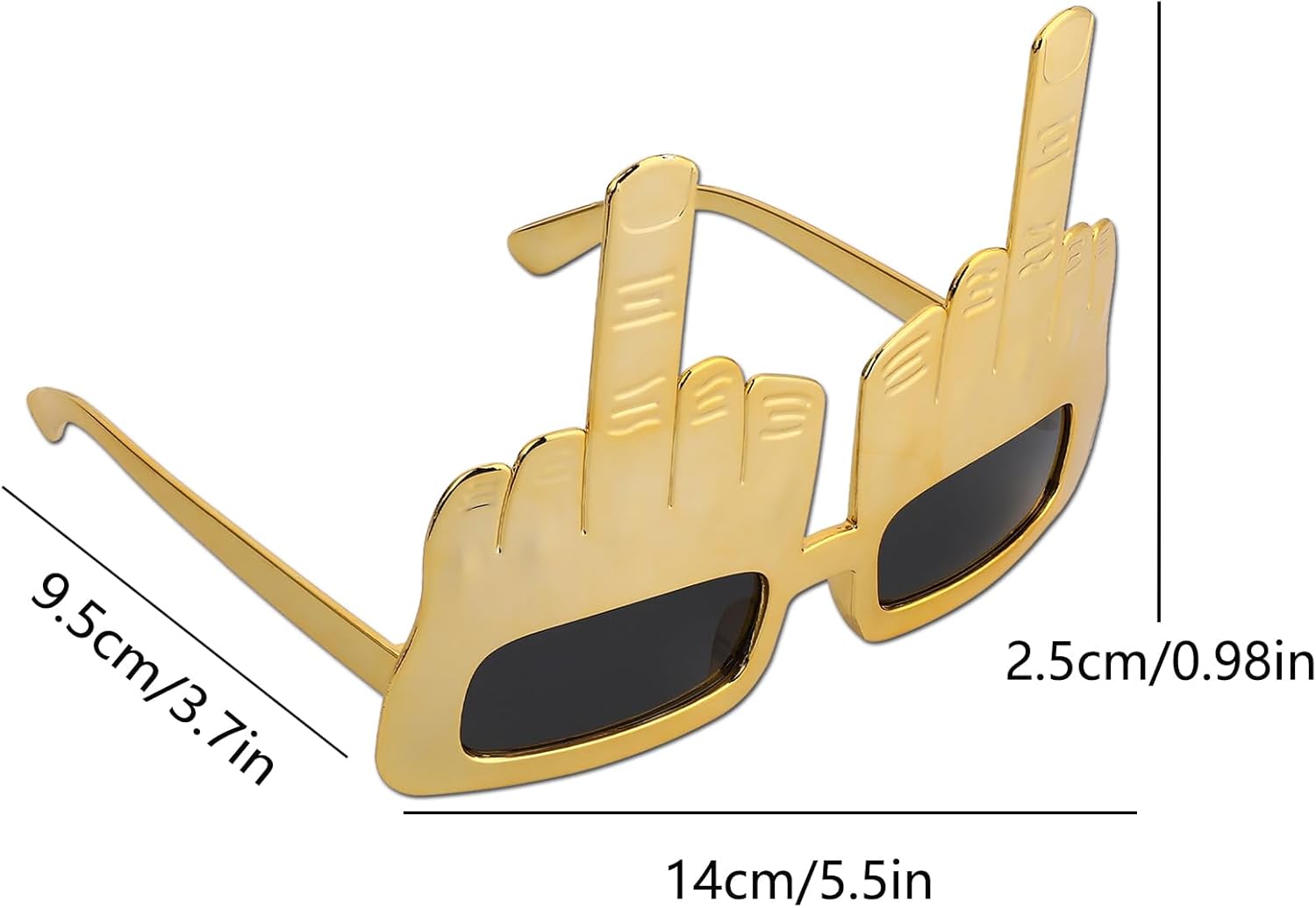 jarbins 2 Pairs Golden Middle Finger Sunglasses Novelty Finger Glasses Funny Eyewear for Halloween Masquerade Cosplay Props for Adults Party Favors