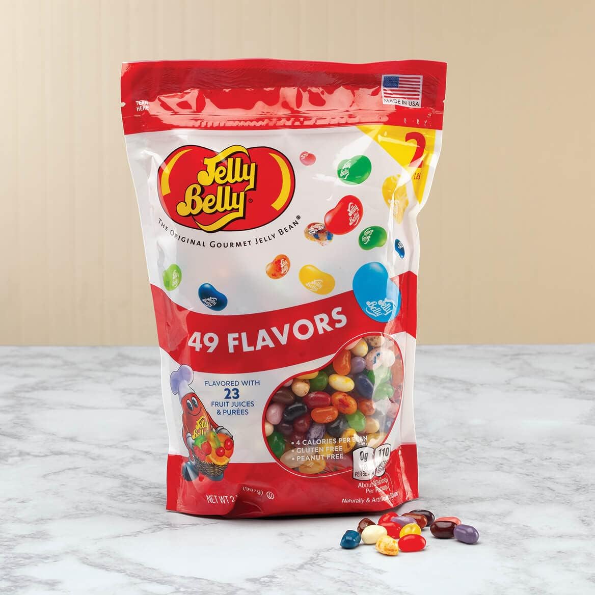 Enjoy the ultimate Jelly Belly "beananza" with this whopping, 2lb. bag boasting 49 flavors of the original gourmet jelly bean! It's the mother lode of joy for jelly bean lovers, and these iconic treats tease your tastebuds with intense goodness, flavored with 23 fruit juices and purees. Offering gluten-free, peanut-free fun at just 4 calories per bean, this jelly bean buffet includes 49 flavors, perfect for mixing, matching and devouring by the handful! Flavors include: A & W Cream Soda, A & W Root Beer, Berry Blue, Blueberry, Bubble Gum, Buttered Popcorn, Cantaloupe, Cappuccino, Caramel Corn, Chocolate Pudding, Cinnamon, Coconut, Cotton Candy, Crushed Pineapple, Dr. Pepper, French Vanilla, Green Apple, Island Punch, Juicy Pear, Kiwi, Lemon Drop, Lemon Lime, Sunkist Lemon, Licorice, Sunkist Lime, Mango, Margarita, Mixed Berry Smoothie, Orange Sherbet, Sunkist Orange, Peach, Sunkist Pink