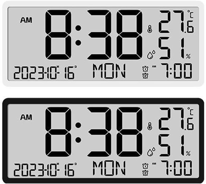Features:*Large LED screen display: This digital wall clock features a large LCD screen that provides a clear and easy-to-read display of the time, year, date, temperature, and humidity. The screen is designed to be and from a distance, making it perfect for use in living rooms or other large spaces.*Multifunctional: In addition to displaying the time, this clock also shows the year, date, temperature, and humidity. It provides a comprehensive view of the current weather conditions and helps you stay organized and informed throughout the day.*Sleek and simple design: With its minimalist design and neutral colors (white and black), this wall clock seamlessly blends in with any living room or desktop decor. It for ADDS a modern touch to your space without overwhelming the aesthetic.*Easy to set up and use: This clock is battery-powered, eliminating the need for messy or complicated installations. Easily insert the batteries, set the time, and you're good to go. It's user-friendly and hassle-free.*Reliable: Made from materials, this electronic clock is built to last. It is designed to withstand daily use and maintain its accuracy over time. You can rely on its performance and its functionality for years to come.Specifications:*Product Name:LED Large Screen Digital Wall Clock*Material: *Size: 34*15*3CM*Color:White, BlackPackage Content:1*Wall Clock