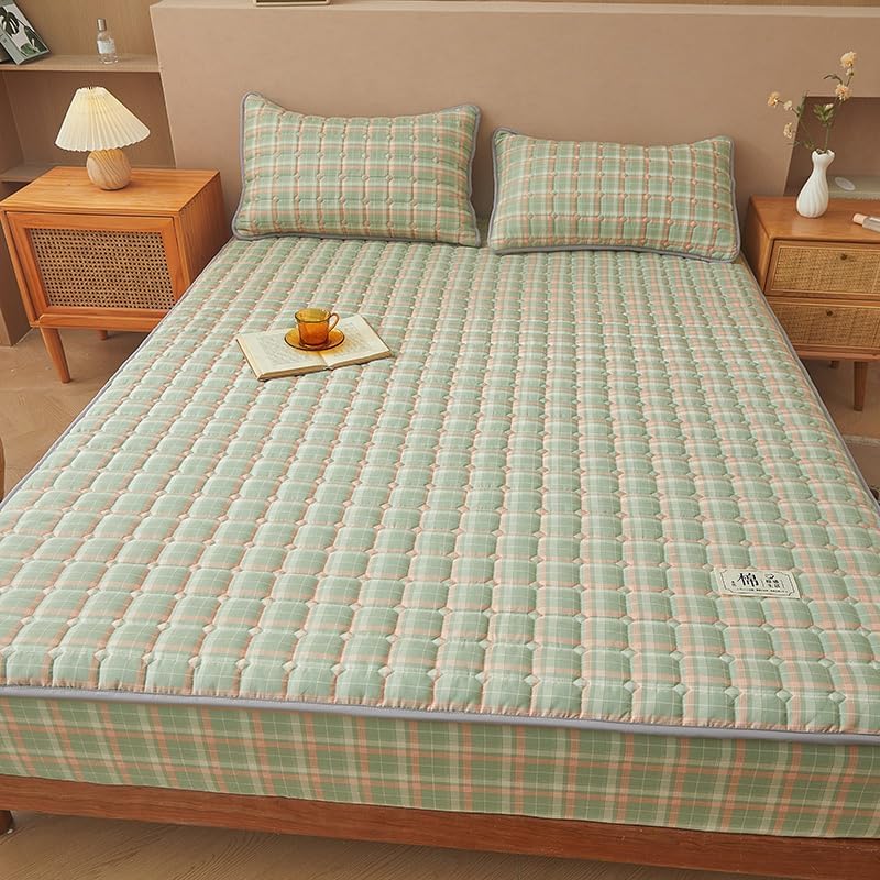 Comfortable and Breathable Fitted Sheet ltra-soft and Breathable Made of thicker filling, the unique airflow system is permeable for fresh air & moisture, our mattress cover brings you a sweet dream. Deep Pocket Design Mattress protector adopt elastic fitting technology, our mattress protector can adjust most regular mattresses tightly. 360° Protection This mattress cover ensures hugs each corner of your mattress to keep it in place throughout the night without bunching, sliding, or coming off. Quiet Sleep The noiseless fabric brings you comfortable sleep without a crinkling sound or plastic feel. The mattress protector will provide a great convenience for your golden sleep. Easy Care & Clean You only take the mattress protector off & slip it in your washing machine and then low tumble dry. Size: Twin: 36"x75" (91x190cm) Twin XL: 47"x80" (120x203cm) Queen: 60"x80" (152x203cm) King: 72"x80" (182x203cm) Cal King: 78"x86" (198x218cm) 2 Pillowcases: 19"x29" (48x74cm) Package includes: 1PCS x Mattress Protector (Pillowcase not included, need to buy separately) Notes: 1.Due to manual measurement, there is a certain error in the product size. 2.Due to lighting effects and shooting angles, there may be chromatic aberration in the product, please understand.