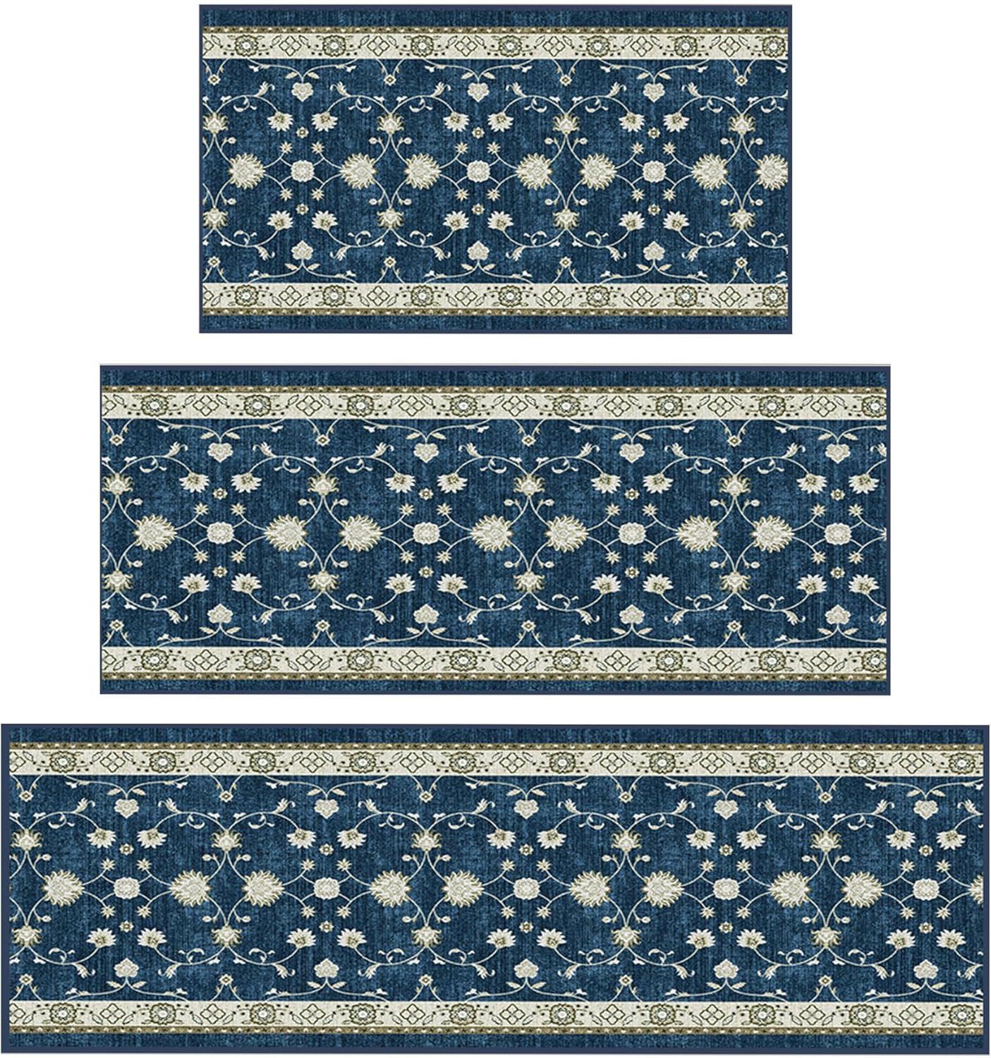 Upgrade your space with the Ottomanson 3-Piece Machine Washable Kitchen Floor Mat Set—designed for kitchens that need dependable performance and effortless style. This coordinating set includes three versatile sizes (22.5" x 36", 22.5" x 48", and 22.5" x 60"), ideal for placing in front of the sink, stove, kitchen island, or along high-traffic walkways.Looking for kitchen rugs that are easy to clean and stay in place? These machine washable kitchen floor mats are built for everyday life. Simply wash cold on a gentle cycle and line dry to handle spills, splashes, and daily cooking messes with ease.The secure non-slip backing helps keep the rugs stable on hardwood, tile, laminate, and vinyl floors, while the low-profile construction allows them to fit neatly under doors, cabinets, and appliances without interfering with movement.Finished in tonal beige, this kitchen rug set delivers clean, coordinated coverage while complementing a wide range of kitchen styles—from modern and transitional to farmhouse and contemporary.