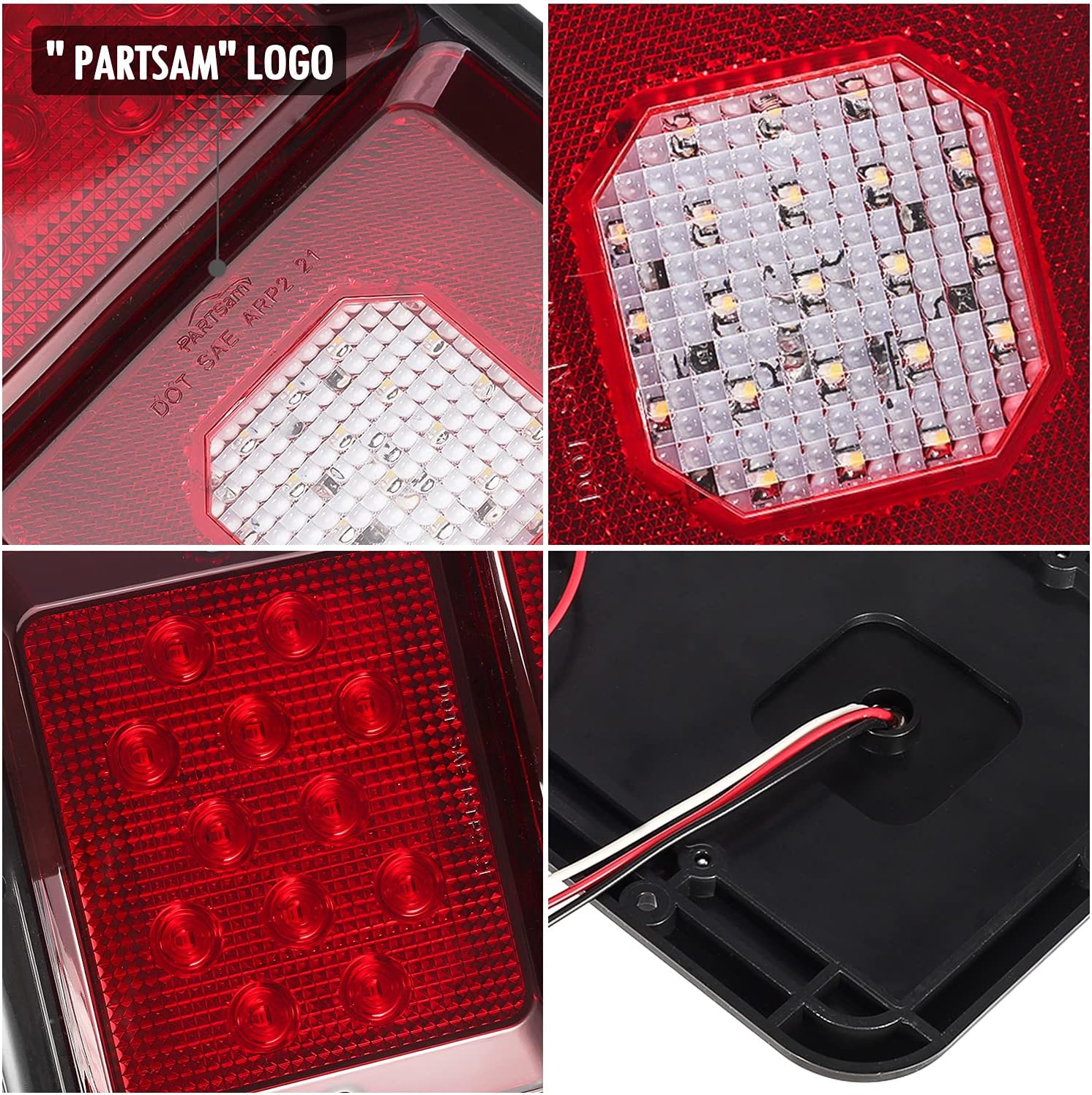 Partsam 2Pcs LED Triple Tail Lights 45 LEDs, Rectangle Vertical or Horizontal Mount LED Trailer Camper RV Tail Lights Stop Turn Tail Backup Reverse Lights Taillights w/Black Base - Red/Clear LensPartsam LED License Plate Light Waterproof 12V DC License Tag Light with Holder Drainage Hole Steel Bracket Mount ABS Housing PC Lens for Trailer Truck Pickup UTV ATV RV Boat 12V