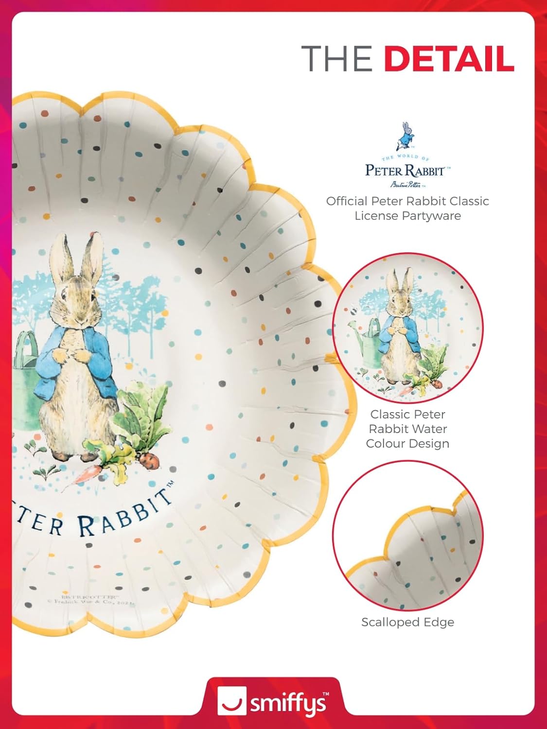 Elevate your party decor with these Official Peter Rabbit Classic License Party Bowls. Each pack contains eight bowls, featuring the iconic Peter Rabbit watercolour design and a scalloped edge. Perfect for birthday parties and themed events, these bowls add a touch of elegance to your celebration. Made from durable materials, these party bowls are designed to withstand spills and messes. The classic Peter Rabbit design and high-quality construction ensure these bowls are both stylish and functional, making them a great choice for any event. Whether it's a birthday party, a baby shower, or a themed gathering, these Peter Rabbit party bowls are versatile and charming. The timeless design captures the essence of Beatrix Potter's beloved character, making your event memorable and unique. Pair these party bowls with matching Peter Rabbit plates, cups, napkins, bunting, and other partyware to create a cohesive and stylish theme. The authentic design ensures a seamless look, perfect for impressing your guests and enhancing the overall party atmosphere. Featuring the official Peter Rabbit Classic logo, these party bowls are an officially licensed product. Embrace the charm and nostalgia of Beatrix Potter's beloved character with this high-quality partyware, perfect for fans of all ages.