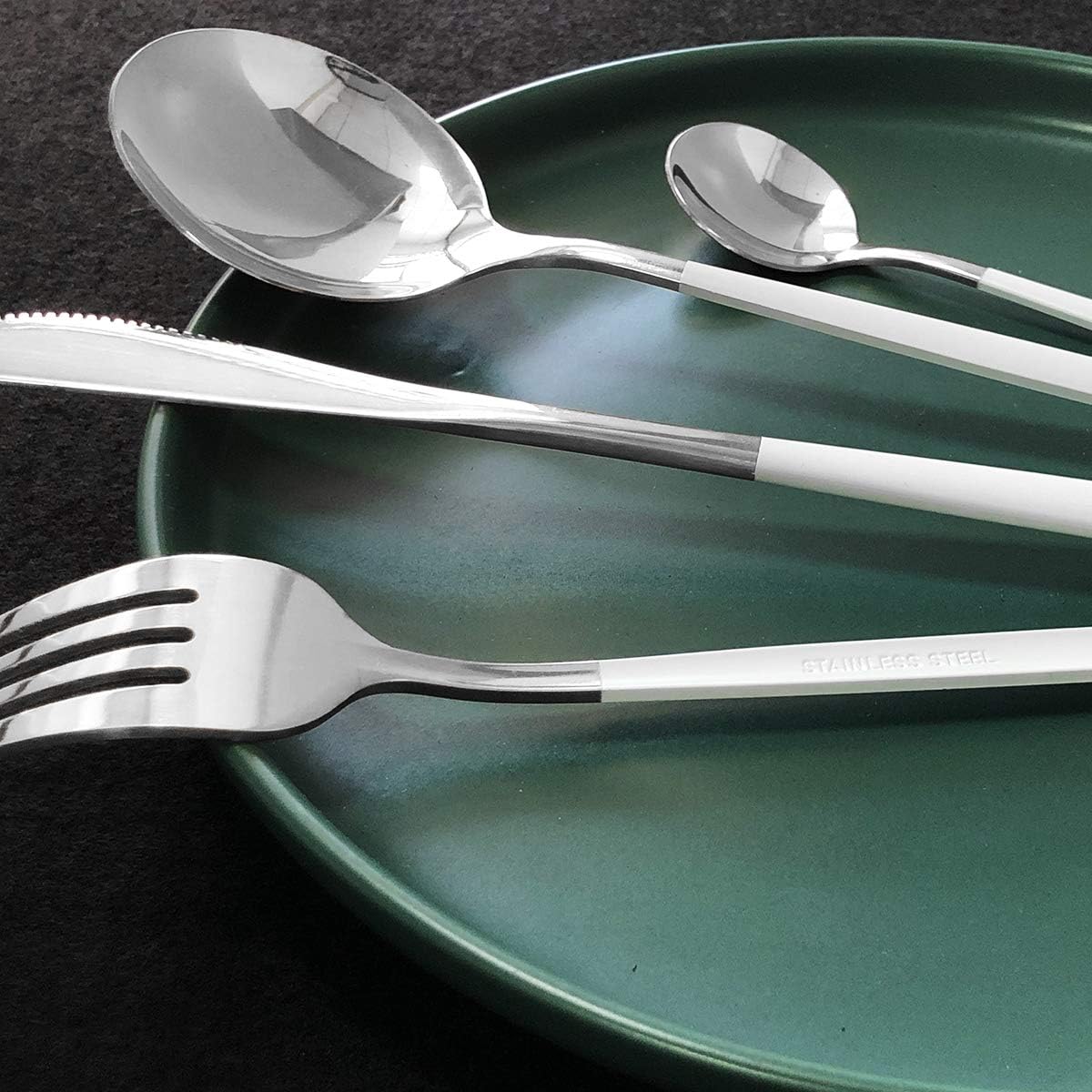 Uniturcky 24-piece Stainless Steel Silverware Set serviece for 6, is a solid flatware set for someone who needs the basics, which has a proper thickness and weight to hold comfortably. It consists of 6 knives,6 table forks,6 table spoons and 6 tea spoons. With the high quality and basic design, this is Whether you need it for some special occasion, to fill in lost pieces of your original set, or if you just need your first set, this will cover you. Perfect for daily use, family gathering, party, camper, restaurant, hotel, wedding and more. Also a great gift for your friend and families new apartment. ADVANTAGE Materials: High quality sturdy stainless steel, No funny taste healthy for everyday use, Corrosion resistant and durable for years Basic Design: Matte appearance with clean lines and no unnecessary frills, Fits your existing flatware well Easy Clean: Smooth edge no rough spots, Cleaning up is a breeze, even hand wash or in the dishwasher Variety: 2 different sizes of spoons and one fork. Perfect for everyday use, camping, travel, etc. WHAT INCLUDE Dinner Fork (21.5cm/8.46'')/30g Dinner Spoon (21cm/8.26'')/40g Dinner Knife (22cm/8.66'')/40g Tea spoon (13cm/5.11'')/10g USING INSTRUCTION 1. Please wash the flatware set with warm soapy water before first using to wash off any residue left from the manufacturing process 2. Please clean and dry the flatware set after using for your healthy daily use, Stored in dry place for its durability Thank you for choosing Uniturcky. Wish you enjoy a HEALTHY & GREEN LIFE with our products.