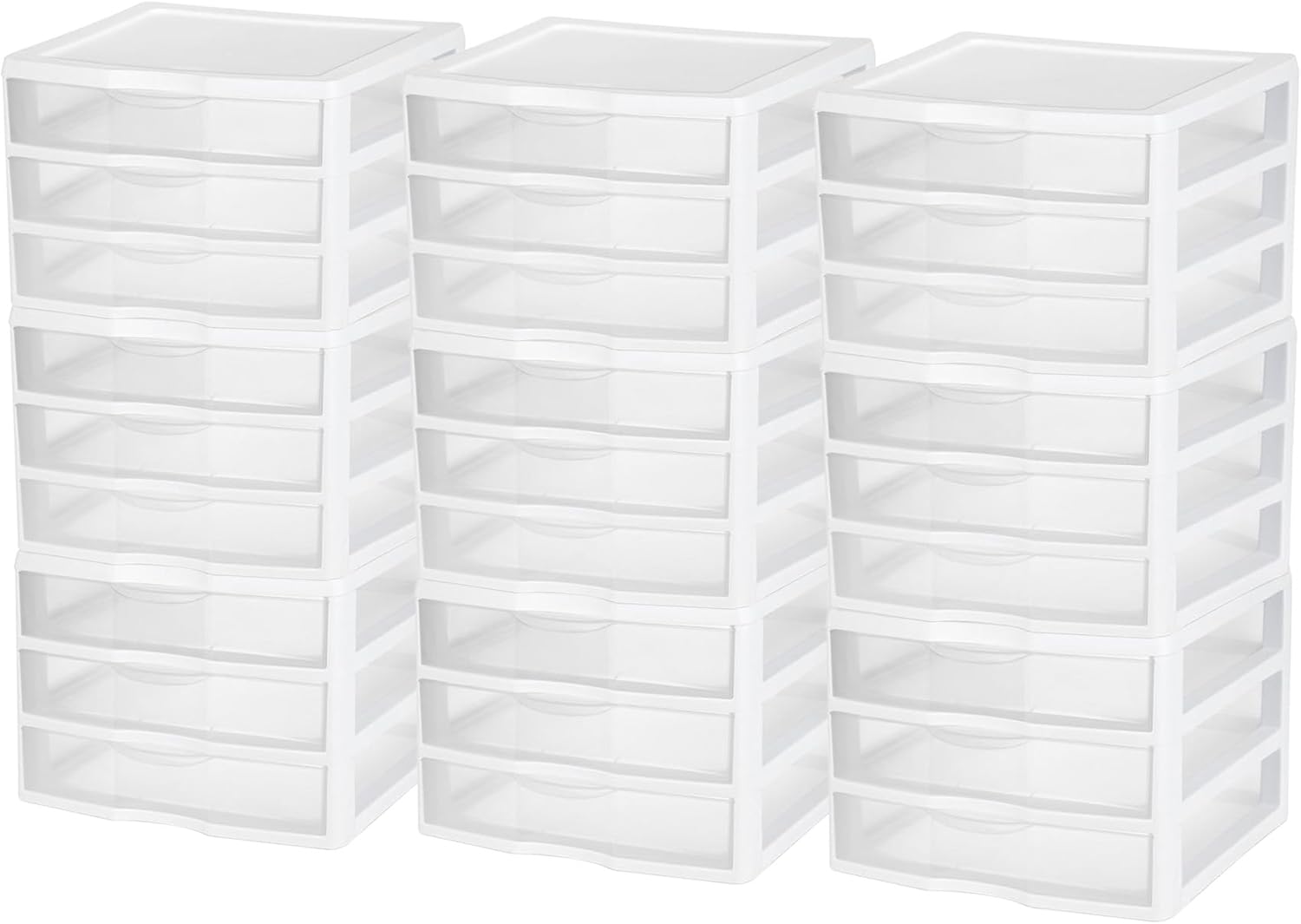 Tame clutter and bring order to your space with the Sterilite Wide 3 Drawer Unit. Designed to sit neatly on desks, countertops, or shelving units, this versatile plastic storage organizer is ideal for managing office supplies, crafting materials, stationery items, creative DIY accessories, art tools, first aid essentials, scrapbooking must haves, stitch and sewing notions, cosmetics, and other small household items. Each of the three wide drawers features a transparent front panel that makes it easy to identify contents at a glance while keeping everything dust-free and contained. The drawers fit standard 12" x 12" paper, making them an excellent choice for hobby rooms, craft studios, or classrooms. The built-in drawer stops prevent the drawers from being removed accidentally, while the classic white frame blends easily with modern or traditional decor. Whether you're organizing your workspace, art station, bathroom counter, bedroom vanity, entryway cabinet, kitchen countertop, hallway shelf, or pantry rack, this unit offers a clean, practical solution for everyday storage needs. Its modular design allows you to stack multiple units vertically to build a custom storage system that adapts to your lifestyle. Crafted from durable, BPA-free plastic, the Sterilite Wide 3 Drawer Unit provides long-lasting organization you can rely on. It’s a smart fit for apartments, home offices, or studios where space is limited, but staying tidy is a must. Streamline your surfaces, sort your essentials, and enjoy an organized home with a compact storage solution built for real life.